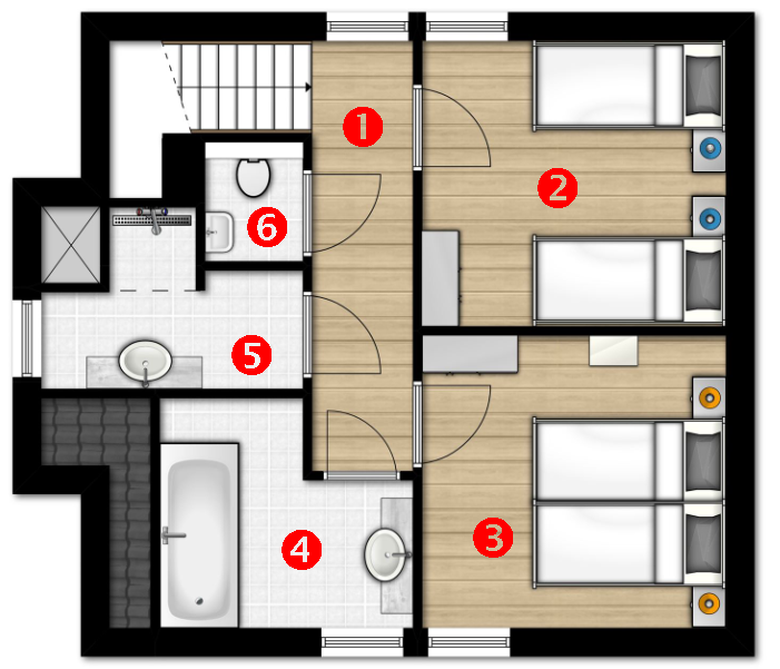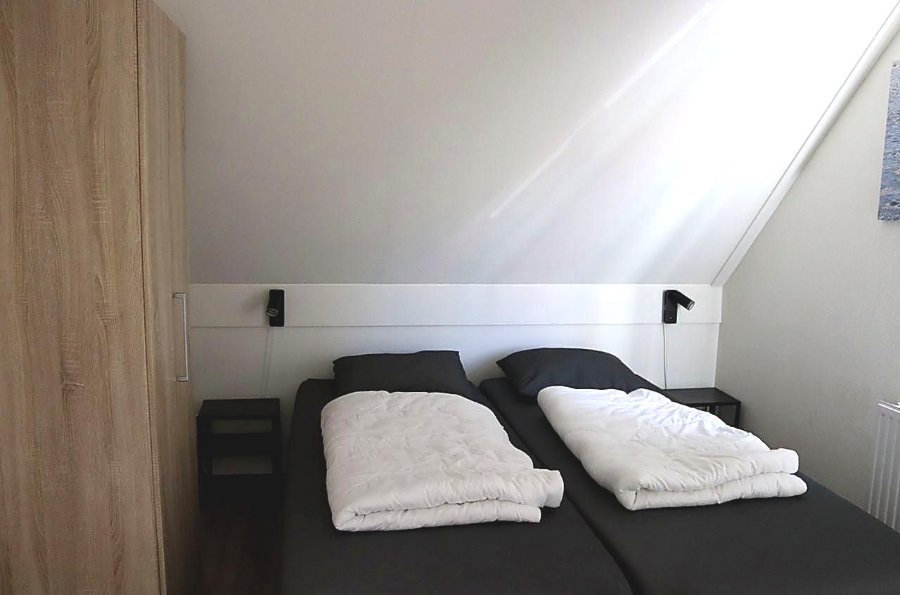 - Slaapkamer 1: 2 x Auping boxspring 90 x 210 cm, nachtkastjes, kleerkast, verduisterende gordijnen, nachtkastjes, nachtlampen met ingebouwde USB