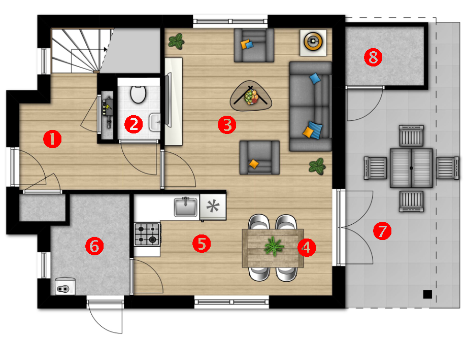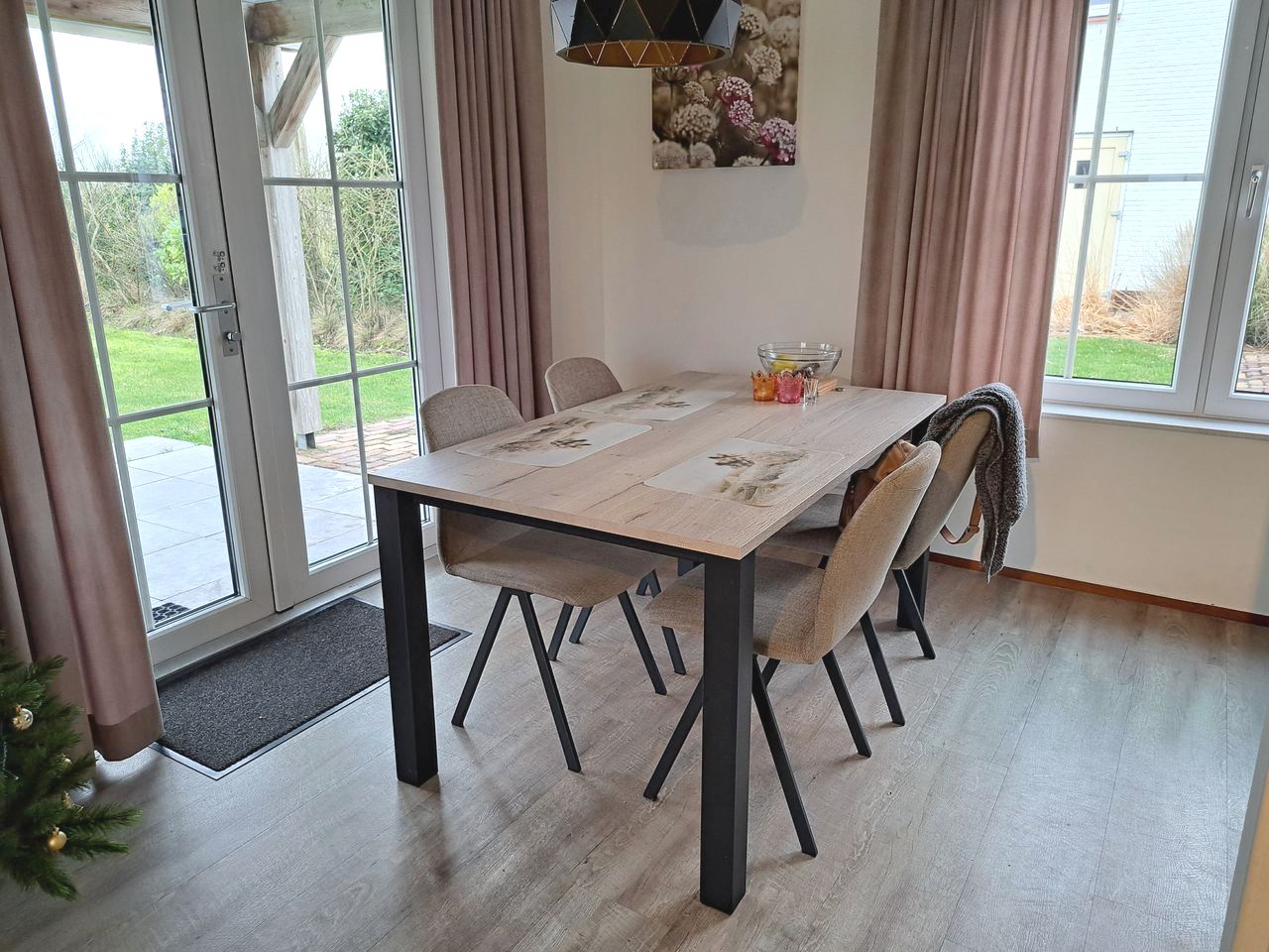 - Eetkamer: tafel met 4 eetkamerstoelen