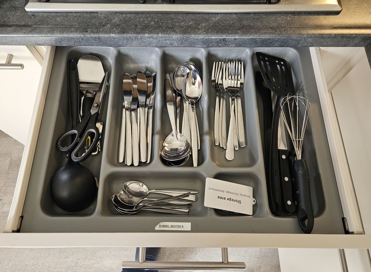 - Keuken: volledig uitgeruste keuken met dubbele inventaris, 4-pits gasplaat, combimagnetron, koelkast met vriezer, vaatwasser, koffizet (Nespresso & Senseo & filter), waterkoker, kluis