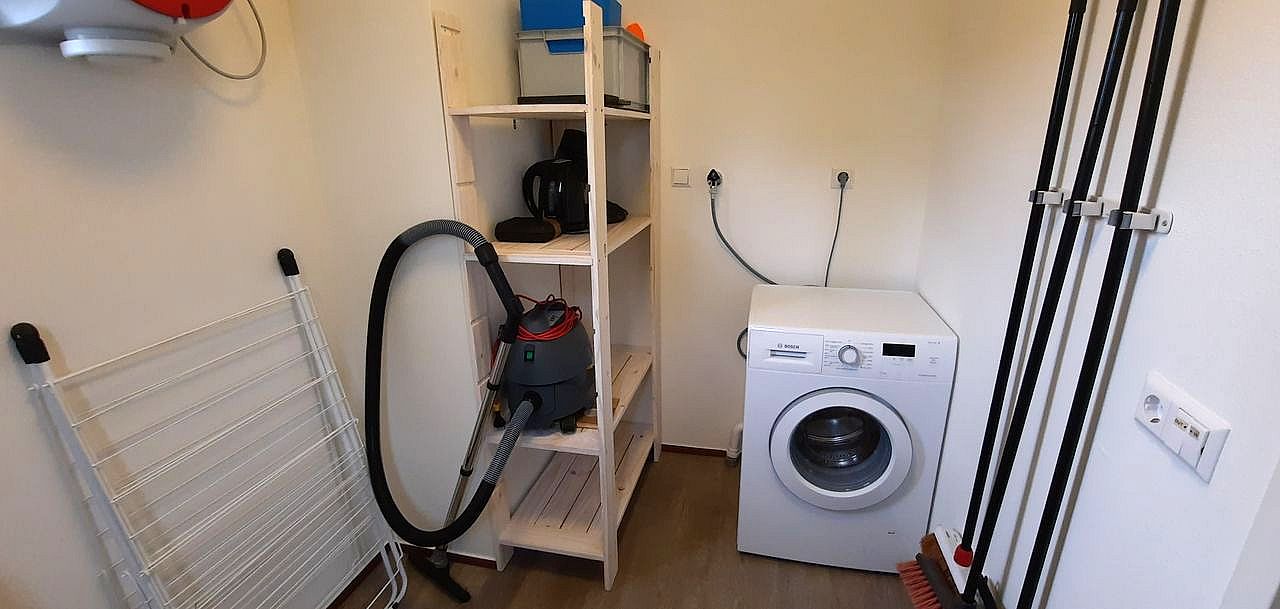 - Berging: wasmachine, droogrek, sorteer-vuilbak, opbergrek, kuisgerief