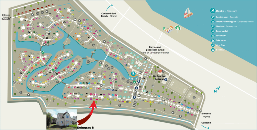 Dit charmante vakantiehuisje voor 4 personen is gelegen in het stijlvolle 5-sterren recreatiepark Noordzee Résidence Cadzand-Bad, aan één van de mooiste en schoonste stranden van Zeeland (blauwe vlag). Het 70 hectare grote park bestaat voor circa de helft uit openbare recreatieruimte. Het grenst aan de noordzijde aan het duindorp Cadzand-Bad, aan de westzijde aan het unieke natuurgebied ‘Het Zwin’ en kijkt aan de zuidzijde uit over het Zeeuws-Vlaamse polderlandschap en de contouren van het eeuwenoude dorp Cadzand.
